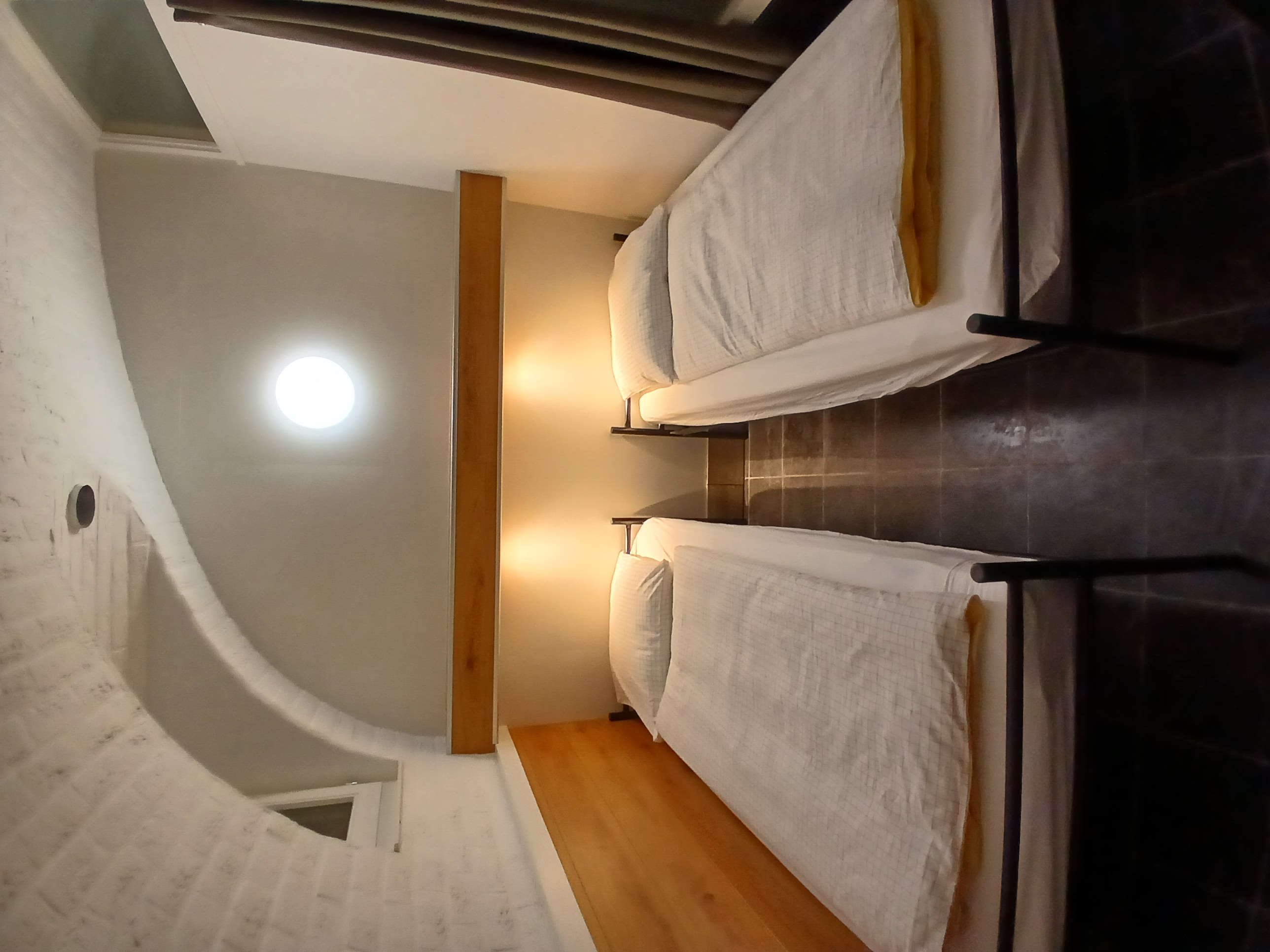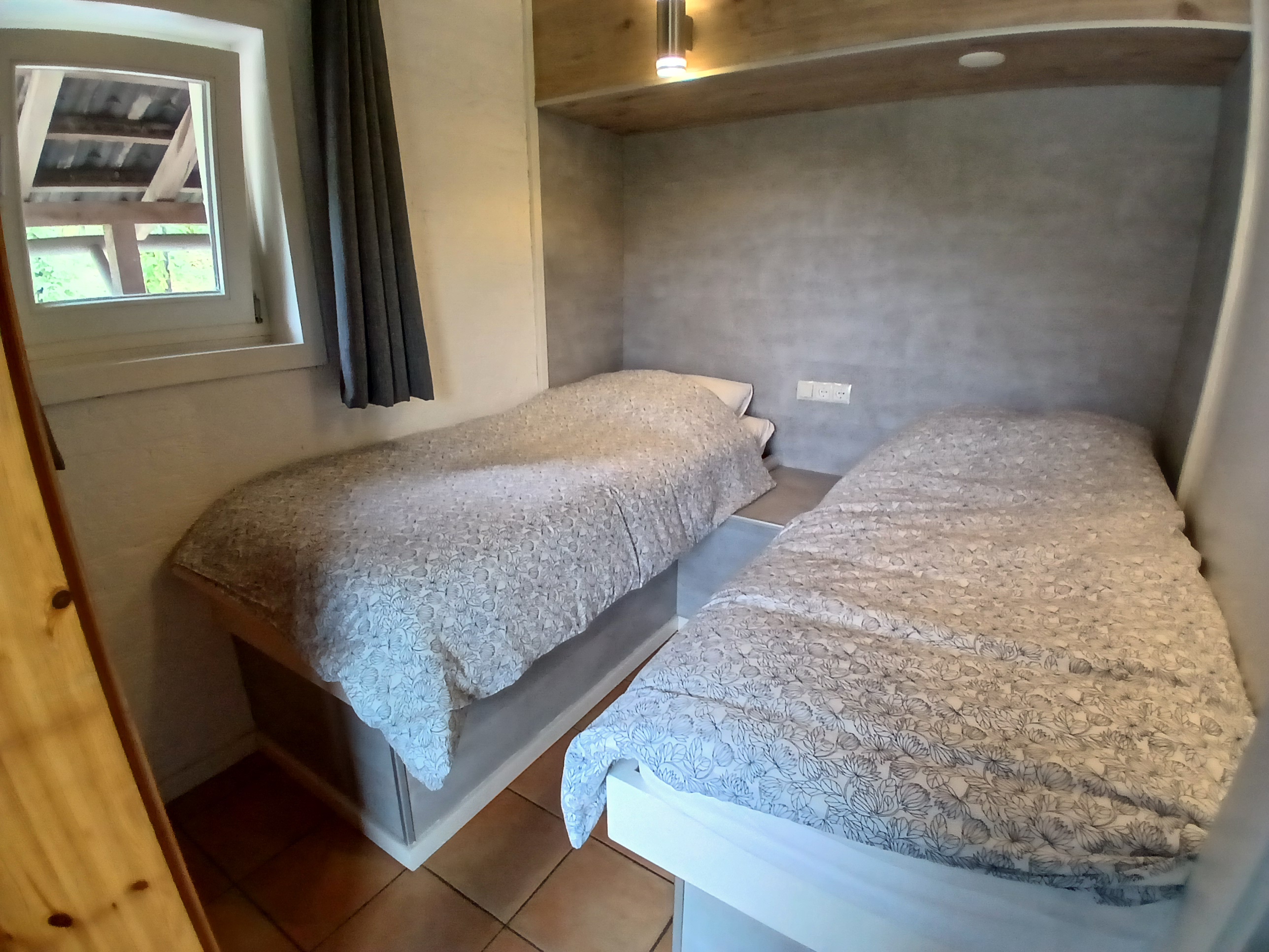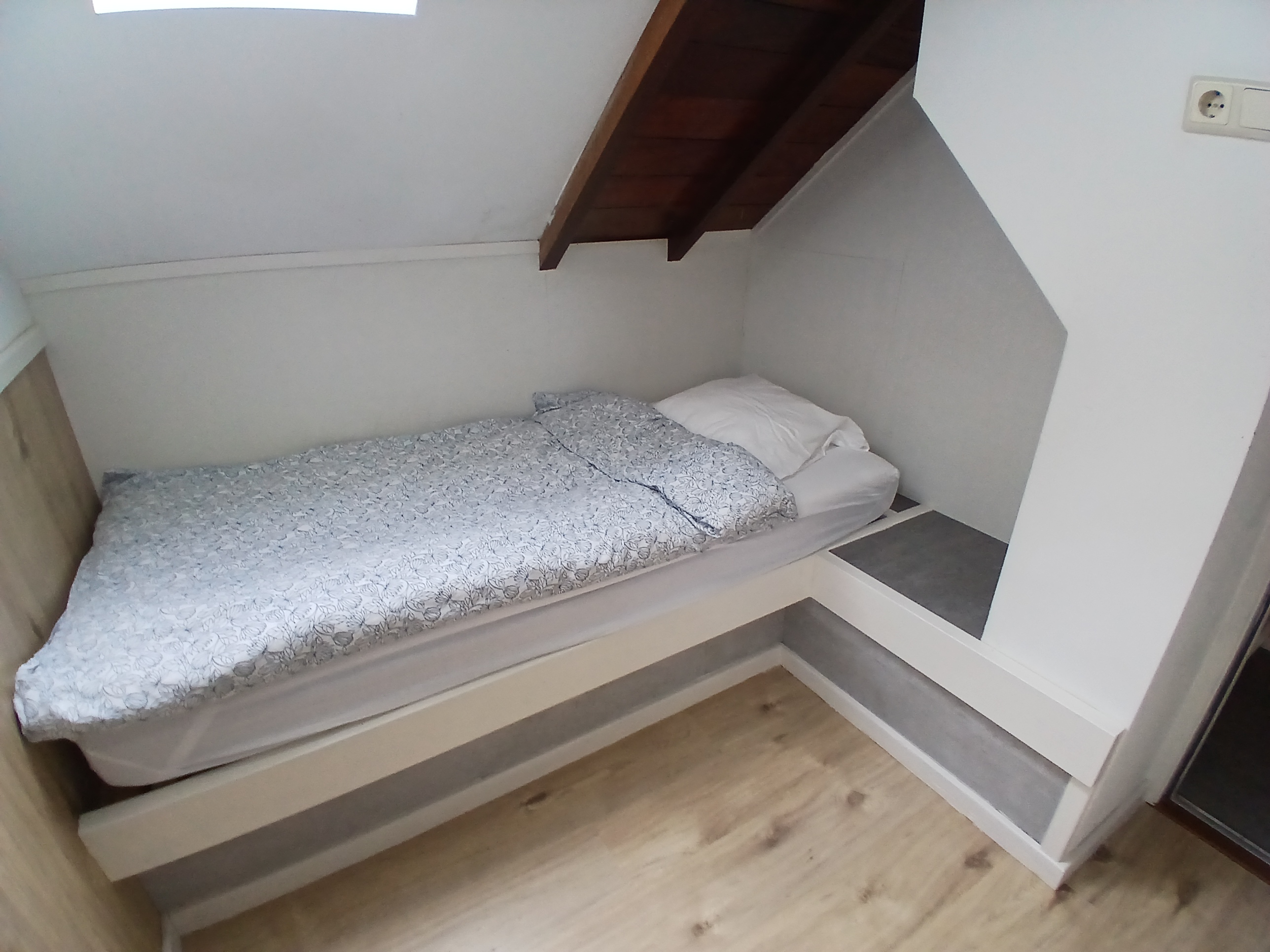1x 2 persoonskamer. Open vide met 3 slaapplaatsen.